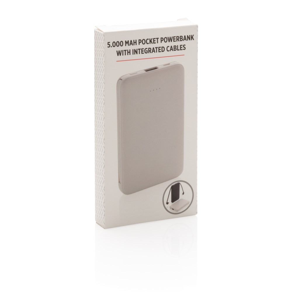 Kompakte und flache 5.000 mAh ABS-Powerbank, die durch Ihre 3 integrierten TPE-Kabel mit allen mobilen Geräten kompatibel ist. Die A-Grade Lithium Polymer Batterie kann voll geladen Ihr Smartphone bis zu 2 mal aufladen. Mit Ladestandsanzeige. Input: 5V/2A. Output: 5V/2A