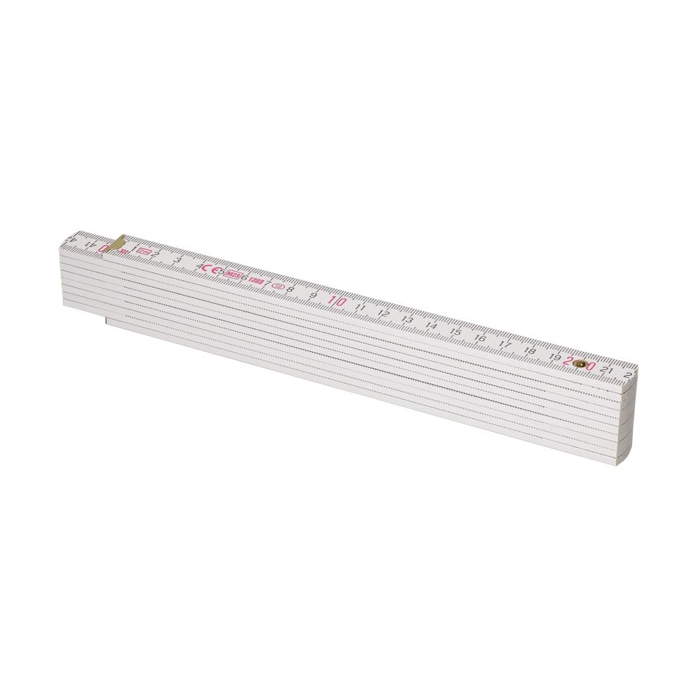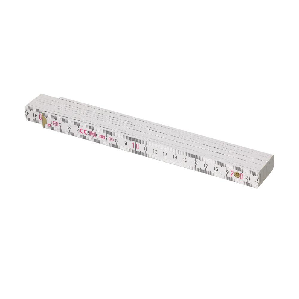 Hochwertiger weißer Glieder-Maßstab aus Buchenholz. Hohe Qualität durch die metallenen Gelenke und die sichtbaren Nieten. Länge: 2 m.